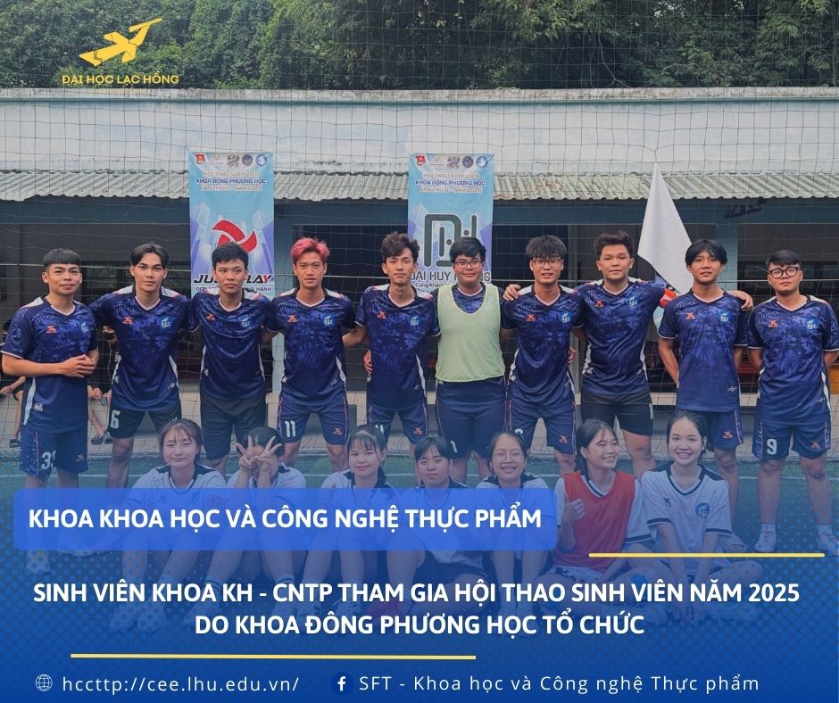 Ngày 3/12/2025 tại sân giáo dục thể chất Trường Đại học Lạc Hồng rộn ràng tiếng hò reo khi Hội thao sinh viên năm 2025 mở rộng do Khoa Đông Phương Học tổ chức chính thức khai mạc. Hòa chung không khí ấy, sinh viên Khoa Khoa học & Công nghệ Thực phẩm góp mặt với tinh thần giao lưa và học hỏi.