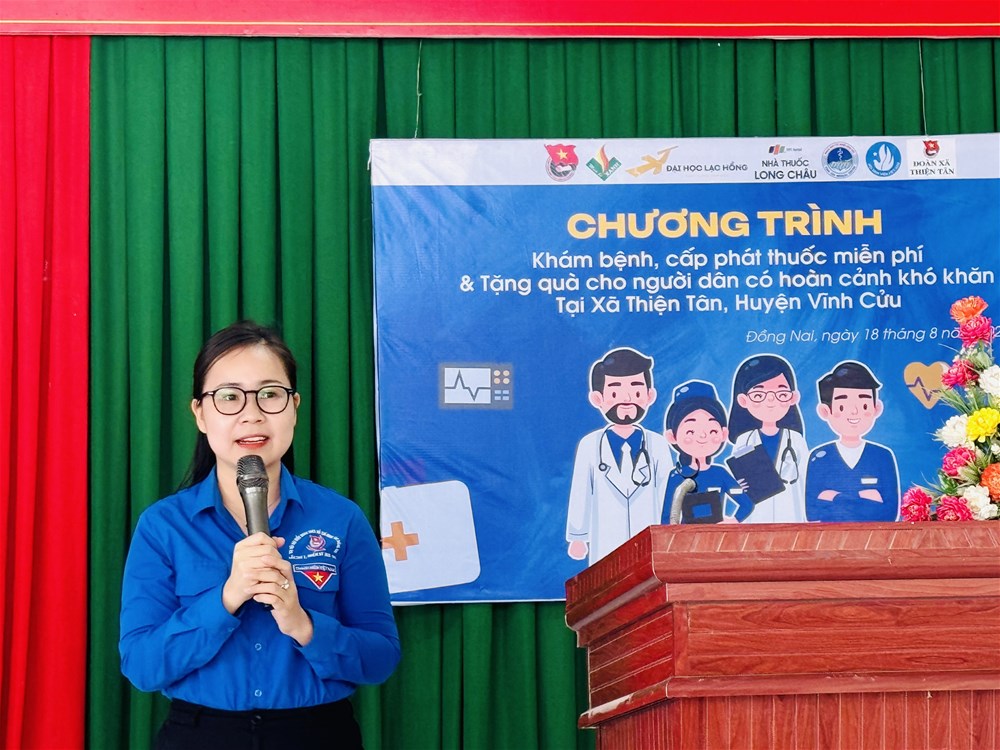 On the morning of August 18, 2024, the LHU Student Union collaborated with Long Chau Pharmacy, the Vinh Cuu District Young Doctors Club, and Thien Tan Commune Youth Union to successfully organize a program offering free health checkups, medicine, and gifts to 100 vulnerable households in Hamlet 6 and 7, Thien Tan Commune, Vĩnh Cửu District.