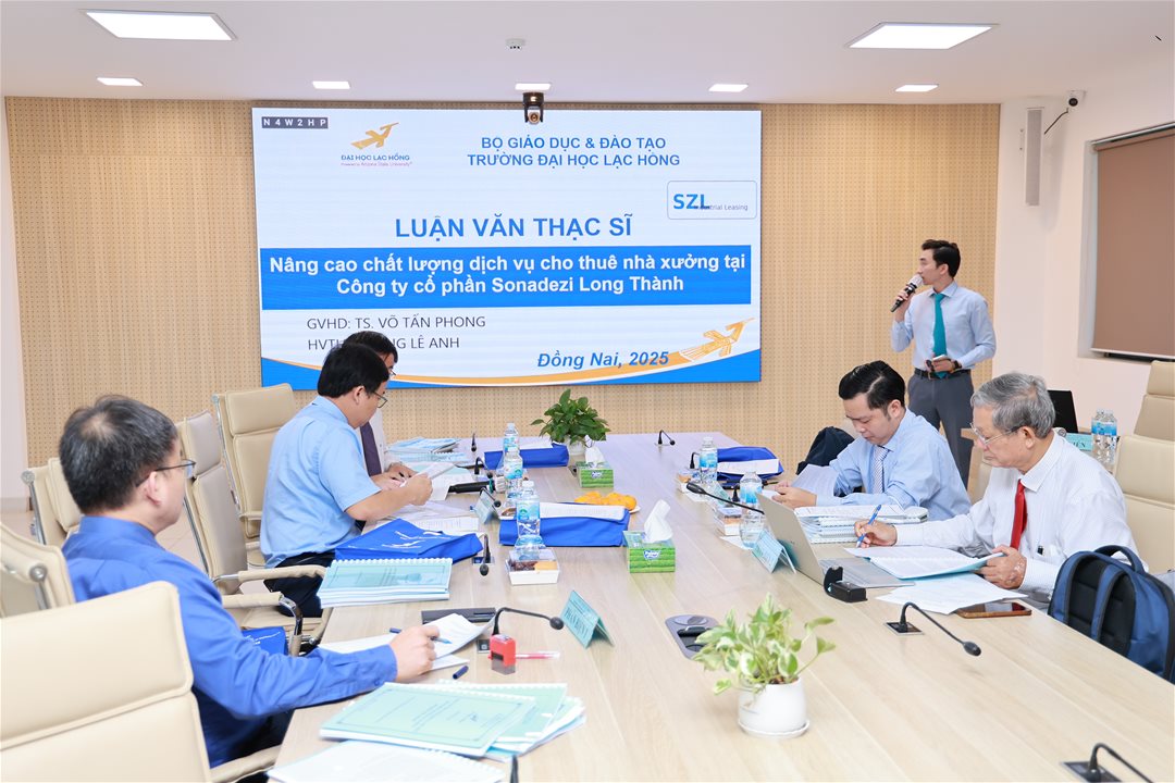 Ngày 07 tháng 10 năm 2025, tại phòng họp cơ sở 1 của Trường Đại học Lạc Hồng (LHU), 10 học viên ngành Quản trị kinh doanh đã xuất sắc hoàn thành và bảo vệ luận văn thạc sĩ của mình. Buổi bảo vệ diễn ra trong không khí trang trọng và đầy tính học thuật, đánh dấu một bước ngoặt quan trọng trong hành trình học tập và nghiên cứu của các học viên.