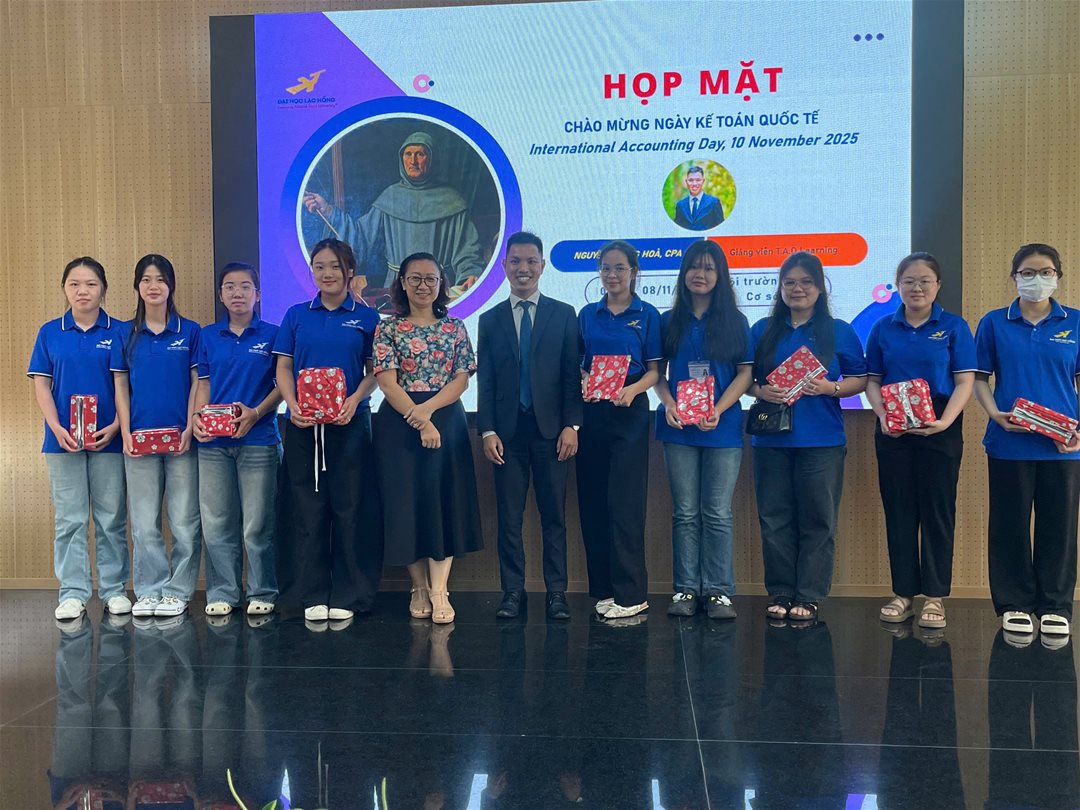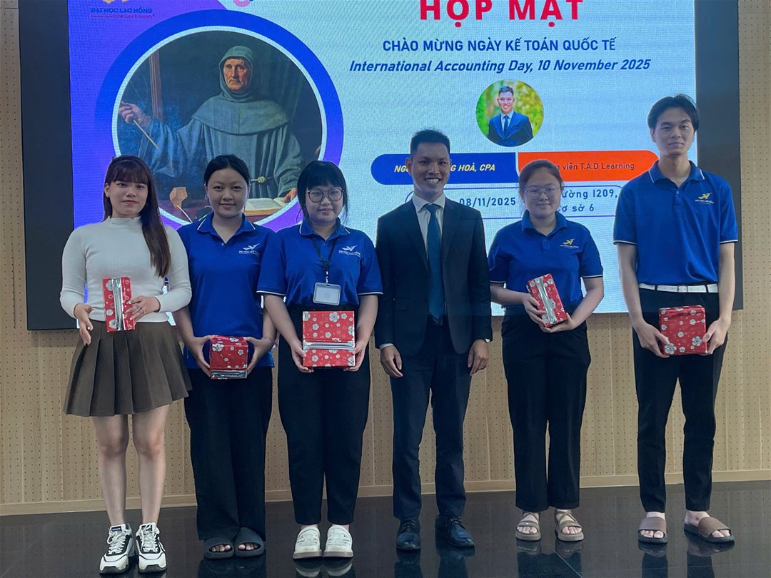 Sáng ngày 08/11/2025, tại Hội trường I209 – Cơ sở 6, Khoa Tài chính – Kế toán, Trường Đại học Lạc Hồng đã long trọng tổ chức buổi gặp mặt chào mừng Ngày Kế toán Quốc tế (International Accounting Day) – ngày tôn vinh những đóng góp của ngành kế toán đối với sự phát triển của kinh tế – xã hội.